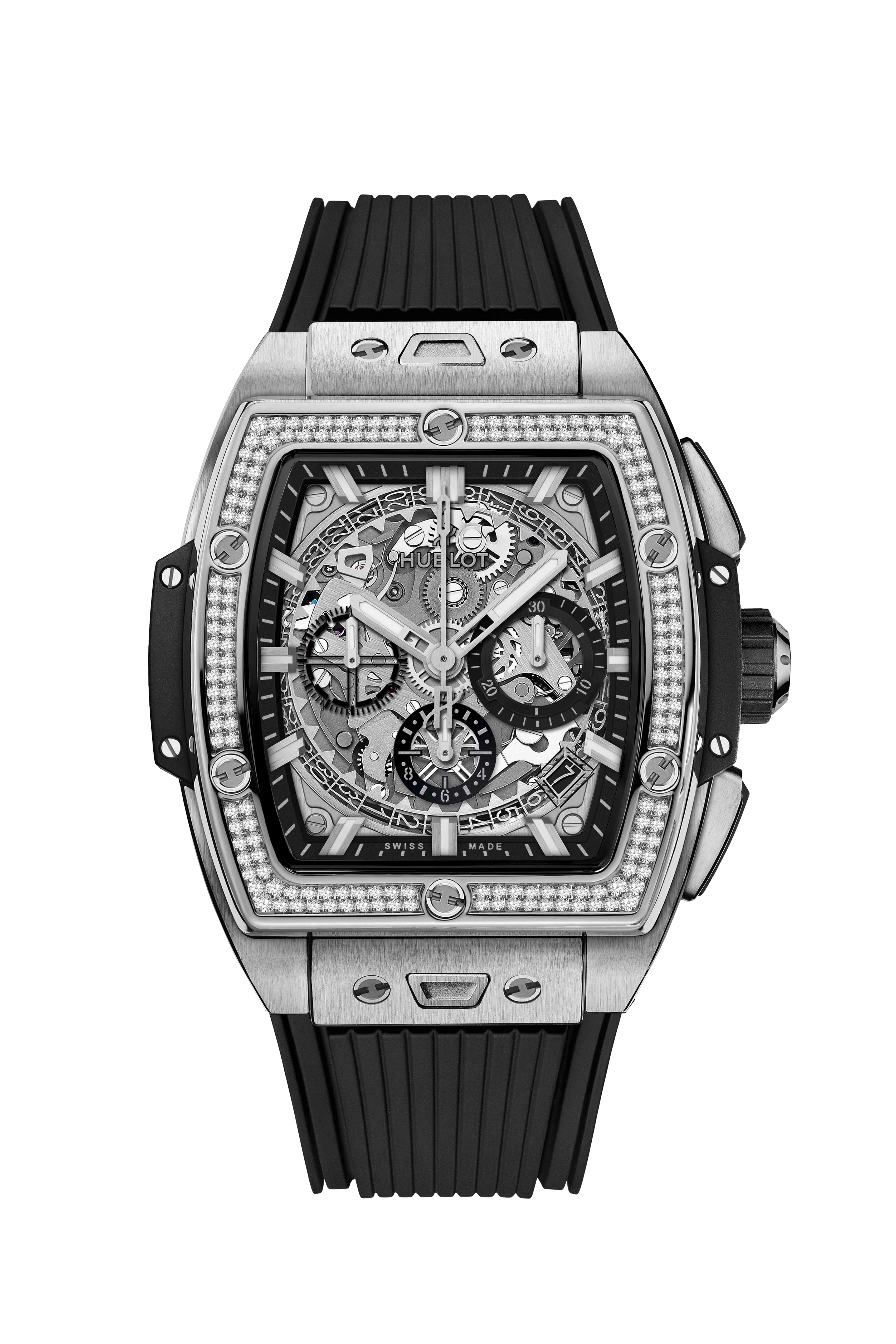 Spirit of Big Bang Titanium Diamonds Spirit of Big Bang Titanium Diamonds 42MM ... • Suggested retail price ((% country %)(% tax %)) MAKE AN APPOINTMENT A perfect fusion between tradition and innovation – in an entirely skeletonized design. Share Select how you want to share this page. Link to share: An error occurred. Link copied successfully. Spirit of Big Bang Titanium Diamonds ... ADD TO WISHLIST REMOVE FROM WISHLIST SHARE MAKE AN APPOINTMENT Open Nav Go to the top Case Satin-finished and Polished Titanium Strap Black Structured Lined Rubber Straps Water Resistant 100m or 10 ATM Power Reserve 50 Hours See all specs BEHIND THE SCENES OUR CRAFTSMANSHIP Movements HUB4700 The HUB4700 caliber is the successor to the famous El Primero caliber - the first chronograph with an integrated style automatic winding (1969), which was also the first mechanical chronograph equipped with a 5 Hz frequency (36’000 alt/h) allowing an accuracy of 1/10th of a second. In a perfect fusion between tradition and innovation, this entirely skeletonized movement is now equipped with silicon regulating element ensuring avant-garde performances, precision and reliability. Learn more Materials Titanium Titanium is extensively used by Hublot, specifically for its lightness. It displays the best relationship between resistance and weight of any material, which makes it an extremely popular material especially within aeronautics. It also stands out with its resistance to corrosion and its inertia in contact with the skin. Hublot only uses high quality, grade 5 titanium, the strongest there is. Once polished, this material retains a slightly bluish metallic sheen. Learn more DESIGN FIND THE PERFECT STRAP FOR YOUR HUBLOT Use our custom strap configurator EXPLORE Online and in Boutique exclusive Includes a Hublot complete service. The Hublot Complete Service ensures our select watches continue to move with precision. Learn more technical specifications case reference 642.NX.0170.RX.1104 Size 42 mm case Satin-finished and Polished Titanium bezel Polished Titanium Set with 164 Diamonds totaling 0.90ct with 6 H-shaped Titanium Screws water resistance 100m or 10 ATM crystal Sapphire with Anti-reflective Treatment dial Sapphire Dial movement movement HUB4700 Self-winding Skeleton Chronograph Movement power reserve 50 Hours strap & clasp strap Black Structured Lined Rubber Straps clasp Titanium Deployant Buckle Clasp More in Chronograph Spirit of Big Bang Black Magic 42 mm ... • Suggested retail price ((% country %)(% tax %)) Spirit of Big Bang King Gold 42 mm ... • Suggested retail price ((% country %)(% tax %)) Spirit of Big Bang King Gold Ceramic 42 mm ... • Suggested retail price ((% country %)(% tax %)) Spirit of Big Bang King Gold Diamonds 42 mm ... • Suggested retail price ((% country %)(% tax %)) Spirit of Big Bang King Gold Pavé 42 mm ... • Suggested retail price ((% country %)(% tax %)) Spirit of Big Bang King Gold Rainbow 42 mm ... • Suggested retail price ((% country %)(% tax %)) Spirit of Big Bang Titanium 42 mm ... • Suggested retail price ((% country %)(% tax %)) Spirit of Big Bang Titanium Ceramic 42 mm ... • Suggested retail price ((% country %)(% tax %)) Spirit of Big Bang Titanium Pavé 42 mm ... • Suggested retail price ((% country %)(% tax %)) Spirit of Big Bang Titanium White 45 mm ... • Suggested retail price ((% country %)(% tax %)) KEEP ME UPDATED I want to stay up to date with the latest Hublot news. sign up