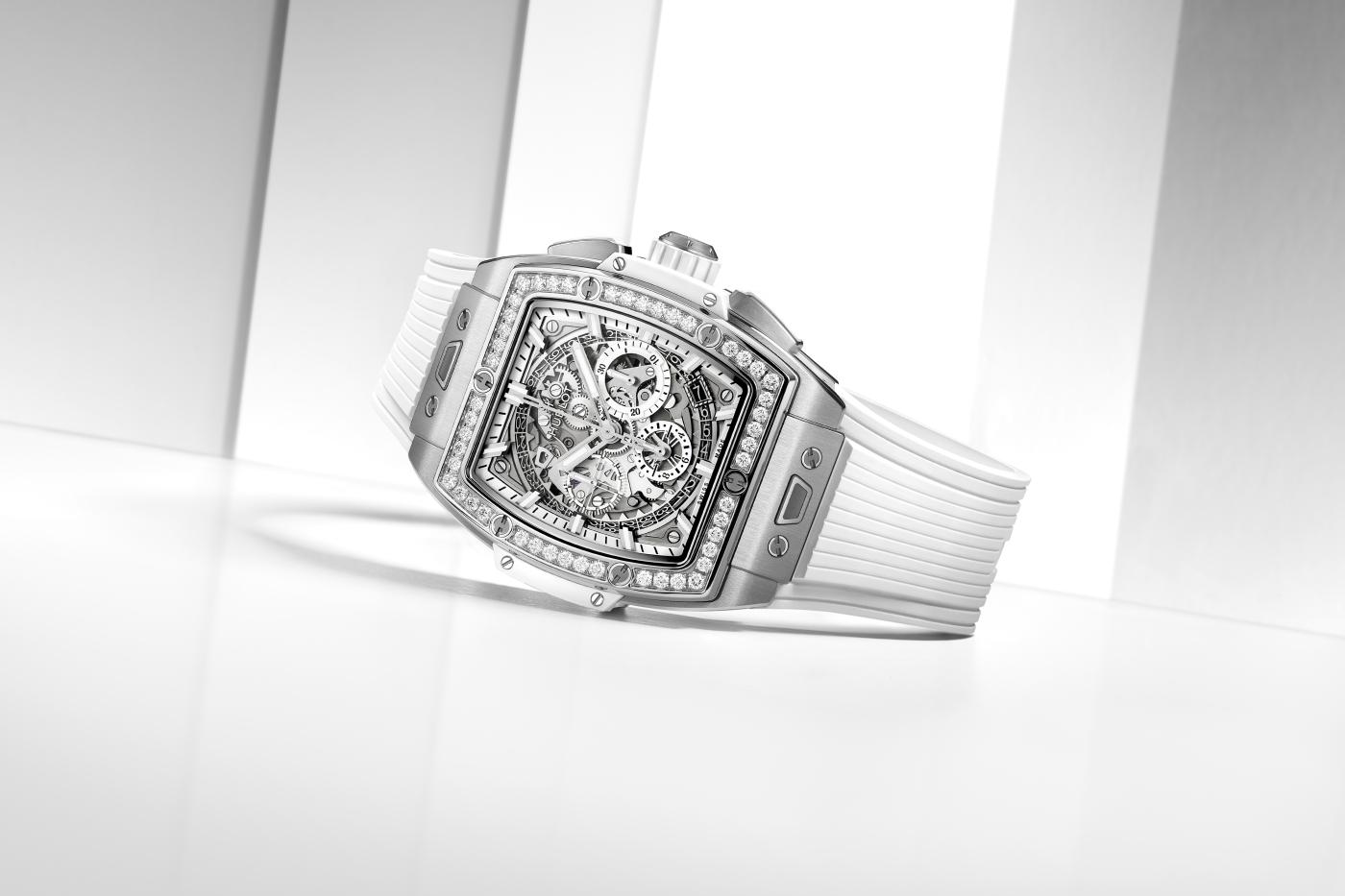 Spirit of Big Bang Titanium White Diamonds Spirit of Big Bang Titanium White Diamonds 42MM ... • Suggested retail price ((% country %)(% tax %)) Add or remove this watch from your wishlist Add or remove this watch from your wishlist problem adding to cart. please try again. ADD TO CART MAKE AN APPOINTMENT MAKE AN APPOINTMENT A perfect fusion between tradition and innovation – in an entirely skeletonized design. EXCLUSIVE SERVICES Join Hublotista, Extend Warranty + Join Hublotista, Extend Warranty Join our community to extend your watch warranty by an additional year (conditions apply) and access exclusive events. Learn more FREE SERVICE + FREE SERVICE By purchasing your watch on the official Hublot website or at Hublot Boutiques, take advantage of a complimentary complete service valued at up to CHF 1,000, ensuring your watch’s optimal performance and longevity. Learn more EXPECTED DELIVERY + EXPECTED DELIVERY Expected delivery within 4 to 8 working days after reception of the payment. *Subject to availability* FREE DELIVERY & RETURNS + FREE DELIVERY & RETURNS Enjoy the savings of complimentary shipping plus the convenience of simple and free returns. SECURE PAYMENT + SECURE PAYMENT Use the latest payment technologies. All online purchases are fast, secure and ensure your personal information is protected. GIFT POUCH + GIFT POUCH Make your purchase more special, with our complementary gift pouch SHOW MORESHOW LESS Get help with an online purchase. For any questions, including technical help: Telephone +41 22 990 99 80 Email eboutique@hublot.com Share Select how you want to share this page. Link to share: An error occurred. Link copied successfully. Case Satin-finished and Polished Titanium Strap White Structured Lined Rubber Straps Water Resistant 100m or 10 ATM Power Reserve 50 HOURS See all specs BEHIND THE SCENES OUR CRAFTSMANSHIP Movements HUB4700 The HUB4700 caliber is the successor to the famous El Primero caliber - the first chronograph with an integrated style automatic winding (1969), which was also the first mechanical chronograph equipped with a 5 Hz frequency (36’000 alt/h) allowing an accuracy of 1/10th of a second. In a perfect fusion between tradition and innovation, this entirely skeletonized movement is now equipped with silicon regulating element ensuring avant-garde performances, precision and reliability. Learn more Materials Titanium Titanium is extensively used by Hublot, specifically for its lightness. It displays the best relationship between resistance and weight of any material, which makes it an extremely popular material especially within aeronautics. It also stands out with its resistance to corrosion and its inertia in contact with the skin. Hublot only uses high quality, grade 5 titanium, the strongest there is. Once polished, this material retains a slightly bluish metallic sheen. Learn more DESIGN FIND THE PERFECT STRAP FOR YOUR HUBLOT Use our custom strap configurator EXPLORE Spirit of Big Bang Titanium White Diamonds ... Add or remove this watch from your wishlist ADD TO WISHLIST REMOVE FROM WISHLIST SHARE MAKE AN APPOINTMENT ADD TO CART MAKE AN APPOINTMENT Open Nav Go to the top Online and in Boutique exclusive Includes a Hublot complete service. The Hublot Complete Service ensures our select watches continue to move with precision. Learn more technical specifications case reference 642.NE.2010.RW.1204 Size 42 mm case Satin-finished and Polished Titanium bezel Satin-finished and Polished Titanium Set with 48 Diamonds, 6 H-shaped Titanium Screws water resistance 100m or 10 ATM crystal Sapphire with Anti-reflective Treatment dial Sapphire Crystal Dial movement movement HUB4700 Self-winding Skeleton Chronograph Movement power reserve 50 Hours strap & clasp strap White Structured Lined Rubber Straps clasp Titanium Deployant Buckle Clasp More in Chronograph Spirit of Big Bang Black Magic 42 mm ... • Suggested retail price ((% country %)(% tax %)) Add or remove this watch from your wishlist Spirit of Big Bang King Gold 42 mm ... • Suggested retail price ((% country %)(% tax %)) Add or remove this watch from your wishlist Spirit of Big Bang King Gold Ceramic 42 mm ... • Suggested retail price ((% country %)(% tax %)) Add or remove this watch from your wishlist Spirit of Big Bang King Gold Diamonds 42 mm ... • Suggested retail price ((% country %)(% tax %)) Add or remove this watch from your wishlist Spirit of Big Bang King Gold Pavé 42 mm ... • Suggested retail price ((% country %)(% tax %)) Add or remove this watch from your wishlist Spirit of Big Bang King Gold Rainbow 42 mm ... • Suggested retail price ((% country %)(% tax %)) Add or remove this watch from your wishlist Spirit of Big Bang Titanium 42 mm ... • Suggested retail price ((% country %)(% tax %)) Add or remove this watch from your wishlist Spirit of Big Bang Titanium Ceramic 42 mm ... • Suggested retail price ((% country %)(% tax %)) Add or remove this watch from your wishlist Spirit of Big Bang Titanium Diamonds 42 mm ... • Suggested retail price ((% country %)(% tax %)) Add or remove this watch from your wishlist Spirit of Big Bang Titanium Pavé 42 mm ... • Suggested retail price ((% country %)(% tax %)) Add or remove this watch from your wishlist KEEP ME UPDATED I want to stay up to date with the latest Hublot news. sign up