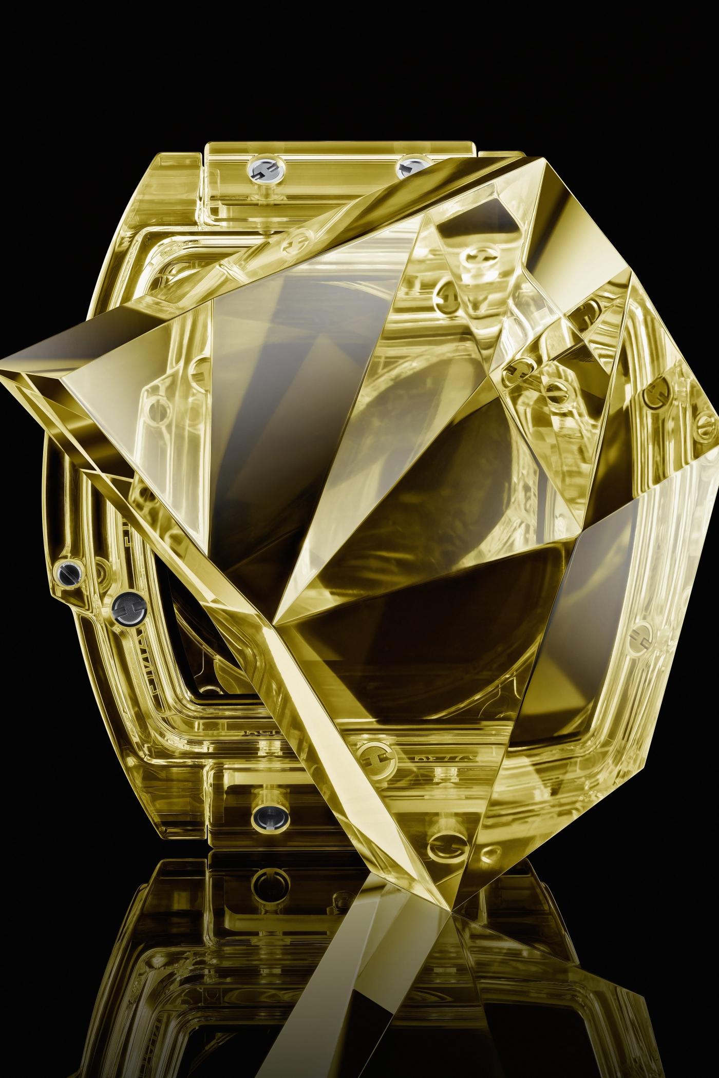 After transparent, smoked black, red and blue, Hublot is inviting a new primary colour into its colour chart: yellow. To give sapphire its solar hue, Hublot fused copper (Cu) with aluminium oxide (Al2O3). A coloured sapphire that conserves all of its initial properties as the most scratch-resistant and transparent material, one of the hardest that exists. A colour that is once again innovative since it is the first time in the history of watchmaking that sapphire has been coloured yellow.